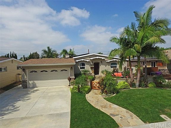 Charming single level beach bungalow completely renovated down to the studs in 2006 located on a beautiful tree lined street in the Los Altos area. Impeccable condition, every inch of this open floor plan has been upgraded and remodeled to create the ultimate entertainers dream home. The stunning and private outdoor areas offers a courtyard entry with mahogany gates, flagstone patios, professional landscape, synthetic turf, bubbling spa, fire pit, waterfall, Bose speakers and outdoor kitchen that includes granite bar for 8, BBQ, refrigerator, sink and umbrella. Interior features include gourmet kitchen with granite counters, breakfast bar, dining nook, stainless appliances and refrigerator opening to a cozy family room with stone fireplace and the ultimate game room that includes pool table, flat screen TVs (2), built-ins with granite counters and 170 bottle vertical wine storage unit. These rooms open through French doors to the private outdoor entertaining oasis. The master suite and remodeled bathroom has a sliding door to the outdoor spaces. Two secondary bedrooms share a remodeled bathroom. Other features include dual pane windows, central A/C, laminate floors, plush carpet in bedrooms, washer/dryer, garage cabinets/overhead storage, (2) sheds,custom window coverings, recessed lighting PLUS 27 solar panels OWNED by the Seller that reduces utility costs substantially-electricity cost last year was only $510! One-of-a-kind, turn-key home ready for the next