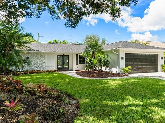 This newly renovated single-family home with a brand-new roof and AC installed in 2022 along with numerous other updates including a resurfaced pool/lanai (with new pool pump, filter, skimmer, screen) is the perfect space for a full-time resident or seasonal getaway! Upon entering the home, you have a view of the kitchen with stainless-steel appliances and immediately your eyes are drawn out the sliding glass doors to the covered lanai and lush landscaping. New sod and an irrigation system were installed along with a row of Clusia plants to provide total privacy to create your own oasis! The kitchen has slow-close, white shaker-style cabinetry and quartz countertops with matching quartz backsplash and a new wine fridge, range, and microwave. Wood-look tile flooring and updated modern baseboards/trim installed throughout the home. Baths have new tile, white cabinetry, and quartz countertops as well. Freshly painted inside/out and a spacious oversized 2 car (epoxied) garage with plenty of space for storage. This beautiful home is the perfect space to relax or entertain, within the Kings Lake Community, just 3 miles from downtown Naples, Naples Pier, beaches, 5th Ave and shopping!