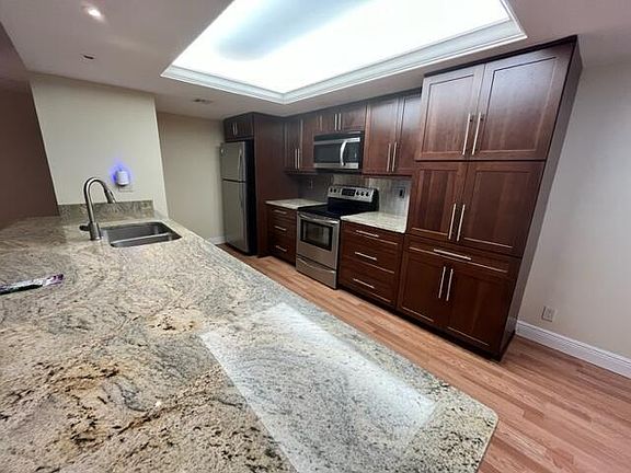 Gorgeous unit with Large Kitchen and stainless steel appliances. Wood laminate floors throughout, laundry room, walk in closet, balcony and in great location, full of shopping and restaurants and close to the beach. Enjoy tennis courts, fitness center, walking trails, and 2 pools. Also water cable and internet included in the rent.