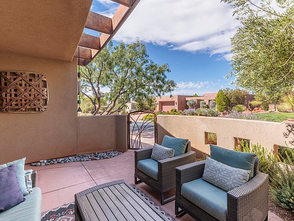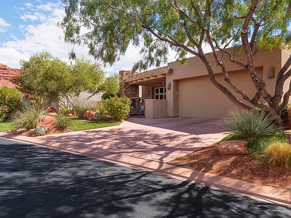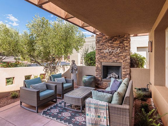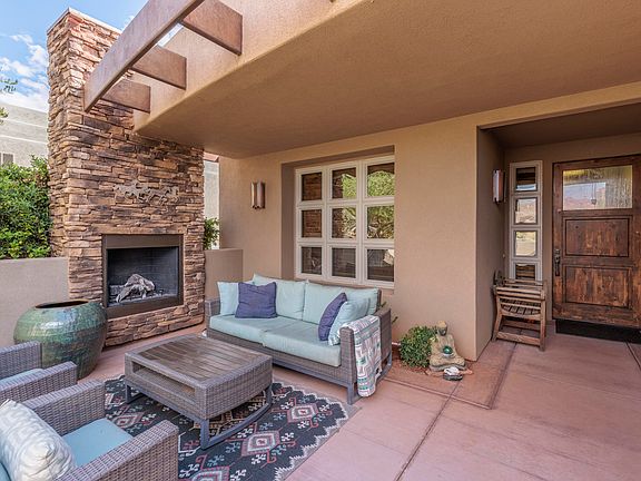 There's something special about the Entrada Country Club lifestyle, and this gorgeous home places you in the heart of all the community has to offer. This 2011 Parade Home is located in a serene and secluded cul-de-sac, this exquisite home features 3 bedrooms, each with it's own bathroom; a stunning kitchen with Bosch appliances, decorative lighting, 12 skylights, soaring ceilings, custom wooden shutters, solid core 8 foot alder wood doors, audio surround sound system throughout, central vacuum with kitchen sweep feature, and indirect lighting. The front courtyard serves up amazing red mountain views that can be enjoyed while seated next to the cozy outdoor gas fireplace. The oversized back patio features a large overhang with a built-in BBQ. The flowing river and babbling brook water feature, along with a peaceful pond, makes the back patio area of the home extra special. Home is quiet inside and tranquil outside, offering up a very private and relaxing environment.