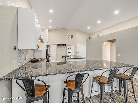 Beautifully updated 5-bedroom Melbourne home featuring 15' vaulted ceilings and a spacious 2-car garage. Enjoy an open floor plan with LVP flooring throughout, a large remodeled kitchen with granite countertops, stainless steel appliances, and a center island—perfect for entertaining. Roof installed December 2020. Relax in comfort while taking in amazing rocket launch views right from your own backyard! Additional highlights include a 2021 roof and prime location just minutes from the beaches and about an hour to Orlando attractions. This move-in ready home offers the ideal blend of space, style, and convenience. Schedule your private showing today !!!