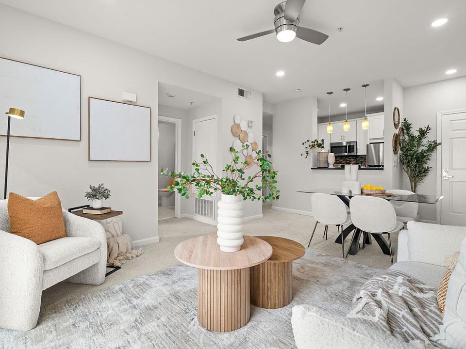 Rarely available penthouse condo with 1 bedroom + bonus room/den and 2 parking spaces offers top-rated Los Altos schools. Bonus room can be used as guest room, home office or formal dining room. Bright & airy with no upstairs neighbors, this unit is tucked away in the central courtyard, away from the train noise, creating a serene retreat in the heart of Mountain View. Fully updated and turn key with modern upgrades throughout: Quartz kitchen countertops, newer stainless steel appliances, recessed lighting, dual paned windows, and central A/C with smart NEST thermostat. Convenient inside laundry with washer and dryer. Open concept main living area leads to a balcony overlooking the interior courtyard. 1 assigned parking + 1 unassigned parking with additional storage. Gated community includes a pool, club house and a children's play area. HOA fee includes water, garbage, and sewer. Conveniently located near major commuting options like CalTrain, Central Expressway, Hwys 101 & 85. Enjoy easy access to San Antonio Shopping Center and The Village for shopping, dining and entertainment. Excellent Los Altos schools, Covington Elementary, Egan Middle and Los Altos High Schools -- this unique combination - Mountain View address + Los Altos schools - is highly desirable.
