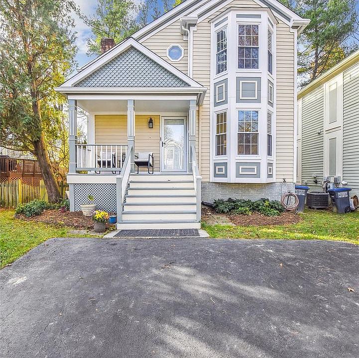 You will love the location and neighborhood. Quaint and charming Victorian style home in quiet neighborhood close to Tysons, and Mosaic. Bright and sunny with vaulted ceilings, skylights, and big windows. The main level offers an office with a bay window and attached bath. The family room with soaring ceilings and wood burning fireplace. The family room flows to the dining room and spacious kitchen with large pantry closet. The full sized washer and dryer and conveniently located near the ktichen. An expansive deck overlooks the private backyard and tranquil landscaping. The upper level with a large primary bedroom with two large closets, a real treat with the high ceilings and ceiling fan. The attached bath has been completely renovated. Sunlight streams in from skylights. Enjoy the window seat in the second bedroom. The hall half bath has been completely renovated and has access to the primary bath. A very clever design! A stained glass window on the upper hall adds an extra bit of charm. The lower level offers a bedroom and and third full bath as well as a large recreation room with a wood burning fireplace. The space has been outfitted with cabinets and counter with room for a full size refrigerator. Storage space is plentiful on this level. The backyard is easily accessed with a large patio play area under the deck! There are no thru street is this charming neighborhood so it is a tranquil niche in the middle of bustling Tysons. Minimum 2 years. Prefer a longer lease.