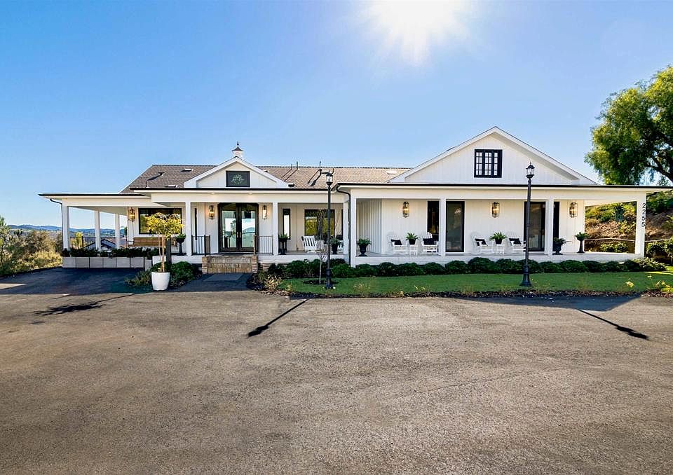 One-of-a-kind designer estate with two separate residences on 2+ Acre that blends elevated architecture with panoramic views—set on 2.07 acres just minutes from the Golf Club of California and Monserate Winery. Expertly crafted and completed in 2022, the main residence is being sold fully furnished and design. This showpiece offering 3,009 square feet of living space across a thoughtfully curated 3-bedroom, 3.5-bath layout. Every doorway and window were custom designed with intent, framing light, views, and moments like art. The dramatic great room is anchored by dual glass walls, a luxe fireplace, and a 220-year-old-stained glass window reclaimed from a Pennsylvania church. A 15-foot sliding glass wall opens fully to the covered patio with fireplace, television, and ample seating—blurring the lines between indoor and outdoor living. The kitchen is a true statement, showcasing marble countertops, a brick backsplash, glass display cabinets, under-cabinet lighting, a farmhouse sink, and a luxury-grade gas range. The broad center island with pendant lighting and bar seating opens effortlessly to the stunning dining room, framed by floor-to-ceiling glass doors that bring the outdoors in. The primary suite is a retreat, featuring a fireplace, sitting area, and three sets of doors leading to the patio. The ensuite bath stuns with marble finishes, soaking tub, dual sinks, and an oversized walk-in shower, plus a closet so spacious it lives like a boutique showroom. Every element of the main home is elevated—from the white oak floors and solid pine doors to the wraparound porch and the outdoor fire lounge. Two additional structures offer incredible flexibility: an 1,199-square-foot second home with 2 bedrooms, 2 bathrooms, full kitchen, and attached 2-car garage, and a stylish 814-square-foot retreat perched above the detached 3-car garage with a bedroom, office, full bath, and open area used as a gym. This is not just a home—it’s a legacy estate. Inspired, refined, and entirely unforgettable. Moments from Highway 76 and nestled in one of Fallbrook’s most scenic pockets, this compound offers the rare opportunity to own a fully realized, designer-built sanctuary with no compromise. All accuracy of items in the house and condition of the property at time of offer should be confirmed, prior to writing the offer.