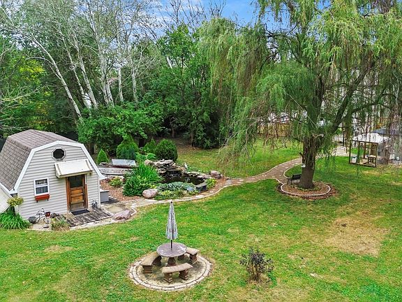 BUILT IN 2019 - OVERSIZED LOT - MULTIPLE GARAGES - KOI POND - CHICKEN COOP - This spectacular estate is basically NEW construction (finished in 2019) on a private 1.1 acre, nearly 300' deep lot; w/ peach, pear & apple trees! Featuring a koi pond w/ water feature, a "she-shed" with loft, chicken coop, covered front porch, FENCED IN YARD, separate fenced in dog area & gorgeous paver patio driveway! Plenty of room for cars, trucks, 4-wheelers & toys with not one, but TWO oversized garages; (2 car attached + 2 car detached w/ extra room for workshop, gas line for furnace & 220 service) PLUS a large carport & sheds! You'll never want to leave your park-like yard, but if you decide to step inside, prepare to be amazed by the quality craftsmanship of this "like new" mint condition home. Vaulted ceilings, stunning HARDWOOD floors, double sided fireplace & an open concept kitchen that's a chef's dream! GRANITE COUNTERS, BLACK STAINLESS appliances, HUGE ISLAND w/ seating, custom COPPER SINK & range hood! Retreat to your private MAIN FLOOR MASTER suite, w/ jacuzzi tub, double sinks & walk in closet with organizers! Convenient main floor laundry! Upstairs, you'll find 2 more generously sized bedrooms & a 2nd full bathroom. MOSTLY FINISHED BASEMENT w/ 8' ceilings has limitless potential, Rec Room or home gym, tons of extra custom cabinetry & counter space for a craft room, workshop or more. Well/septic with whole house filtration system & reverse osmosis. Cutting edge technology with smart locks controlled by an app, Ecobee WIFI thermostat, Ring camera & 5+ camera security system. ALREADY PASSED VILLAGE INSPECTION; HOME IN MINT CONDITION but selling AS-IS due to relocation. Nothing like it on the market!