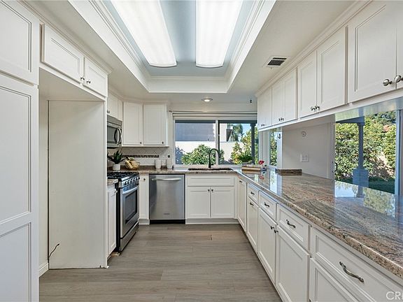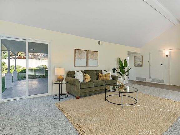 Come check out this fully updated home in the beautiful Blue Mountain City of Grand Terrace. The home features luxury vinyl plank floors and newer carpet in the living room and bedrooms. It also has double paned window along with plantation shutters in the living room. The kitchen boasts newer cabinets and granite counters and has a sliding door which enters to a peaceful garden/atrium. The hall bath consists of a spa like jetted tub and double sink vanity. The spacious primary suite features a walk in closet, makeup vanity and updated bath with dual sinks and granite counters. The primary bath also overlooks a rear atrium. Step out back to a covered patio with lush green grass and numerous citrus tress including grapefruit, navel, blood orange, tangelo, valencia and lemon trees. The home has been reroofed in the last year and the exterior has just been repainted. Come check it out, this will not last!