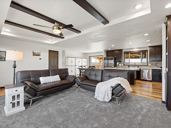 Set on 40 wide-open acres, this beautifully updated 3 bedroom, 2 bath ranch offers the perfect balance of privacy, freedom, and convenience. Located just 10 minutes from Ellsworth AFB, close to Rapid City, and less than an hour from Mount Rushmore, this peaceful retreat enjoys an agricultural tax rate, very light covenants, and unobstructed prairie views with the Black Hills rising in the distance. There are so many 2025 updates! Inside, the open-concept design features brand new luxury vinyl plank flooring, 2025 installed premium StainMaster carpet, and new Bali blackout blinds throughout. The spacious kitchen and great room provide an inviting central hub for daily living and entertaining, while the primary suite includes a soaking tub for ultimate relaxation. The home’s freshly updated solid metal HVAC ductwork ensures lasting comfort and durability. Front and back yards of the home were Hydroseeded this spring, and have grown into a lush lawn around the home. Outside, the land is fully fenced except at the driveway, with two additional fenced enclosures: one, backyard chain-link, one goat fencing, each nearly a quarter acre. A 50-amp RV hookup, RV and auto carports, and a commercial-grade greenhouse expand the property’s versatility for self-sufficient living, hobby farming, or small-scale production. Enjoy peaceful, wide-open spaces, fresh air, and endless skies, your private homestead just minutes from everything the Black Hills has to offer.