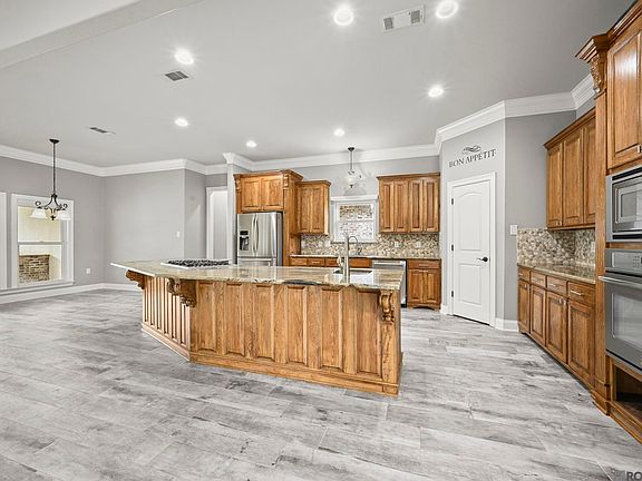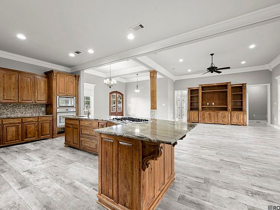 **OPEN HOUSE 12/7/25 12-2PM AND 12/14/25 2-4PM!!** Welcome home to this beautiful 3 bed, 2.5 bath home on 2.13 acres in Denham Springs featuring 3,004 living sq ft and 5,225 sq ft under roof. This home is in flood zone X and has a brand new roof for peace of mind. This property offers the perfect mix of space, comfort, and high end finishes. Inside, the open concept kitchen, living, and dining area is ideal for everyday living and entertaining. The kitchen features a large island with a gas cooktop and prep sink, wall oven, double sink, stainless steel appliances, and pantry. The layout flows easily into the living area, creating a warm, inviting space. One of the biggest highlights is the 850 sqft covered back porch complete with an outdoor kitchen and fireplace—perfect for hosting, grilling, or relaxing outdoors. The expansive front porch adds classic Southern charm and a warm welcome as you arrive. The primary suite offers a true retreat with a custom tile shower with multiple showerheads, a garden tub, and double granite vanities with a built-in heater. The large primary closet includes built-in drawers and custom storage, providing plenty of space and organization. The home also features a large walk-through laundry room connecting the primary bedroom hallway to the secondary bedroom hallway, complementing the split floor plan. The dedicated theater room is a standout space, designed for the full media experience and features over $40K invested in media equipment and furnishings. Throughout the home, porcelain tile flooring provides durability, with plush carpet in the theater room for added comfort and sound management. Energy efficiency shines with spray foam insulation in the home, attic, and roof, plus a multi-stage HVAC system with a fresh air vent into the attic. The oversized 2-car garage includes an additional third bay with its own overhead door—ideal for storage, hobbies, a 3rd vehicle or equipment. This property is a must see!