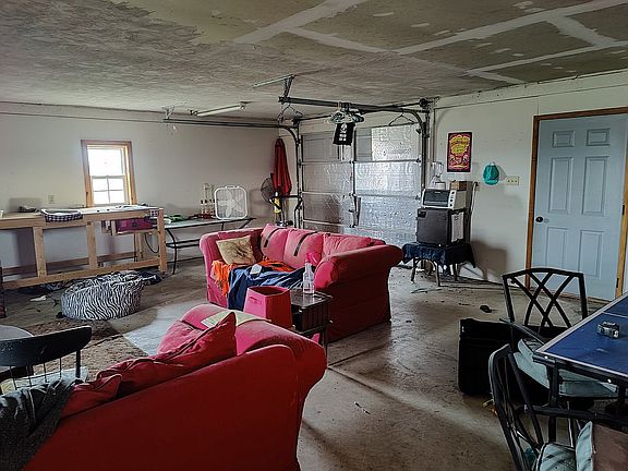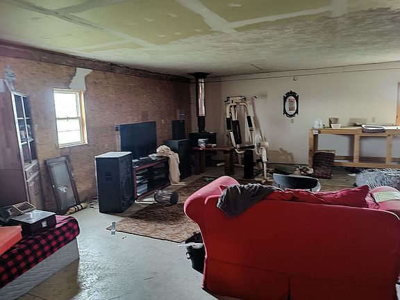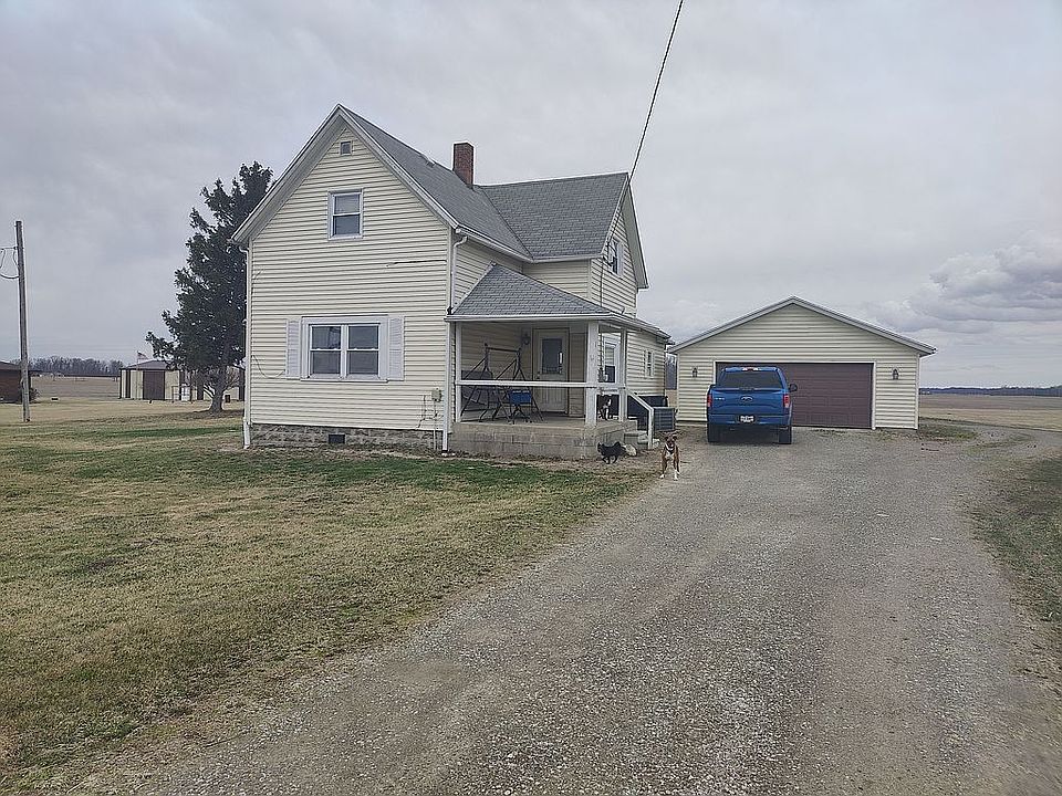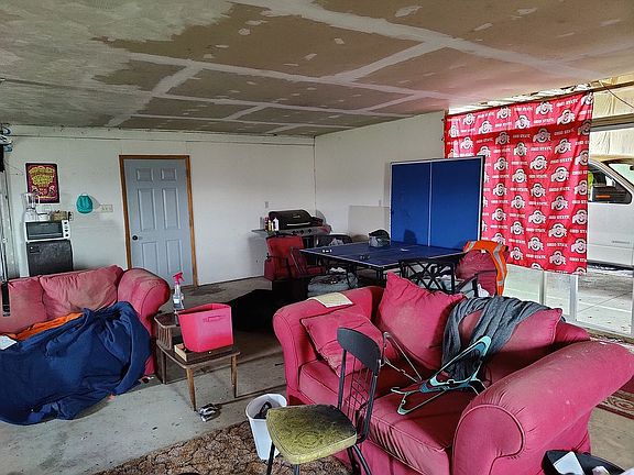 A farm home on two acres with a two plus car garage, a large outbuilding with concrete floor and electrical connections...a perfect workshop or vehicle storage building and an older barn for farm use or animals. The home has 2-3 bedrooms, an eat-in kitchen, a family room that opens to the dining room and a large living room. The bath is on the main level. Forced air heat and central air, large utility and mud room, a partial basement for the utilities. Good solid home waiting for your personal touch. Located east of Maplewood.Giant man cave with wood burning stove. All the garbage space a guy will ever need.Please text 937-489-9705