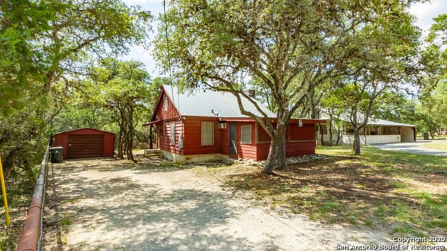 Looking for that sweet little Canyon Lake/ Guadalupe River cabin that you can put a little TLC into and make it exactly what you want? This is your opportunity. Not too many opportunities like this in this community any more. This home makes for the perfect lake home, weekend getaway or just as an investment. This cozy home has a small bedroom, upstairs loft, extra front room that could easily be converted to another bedroom. Living room is open to the dining room and kitchen. The large stone fireplace is the focal point of this cottage. Big bonus is the the detached garage/workshop. This property backs up to the upscale Cascada Community and the overall property really feels peaceful and secluded. Enjoy neighborhood pool, community center, boat ramp and park. Comal ISD. Location, location, location!
