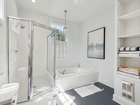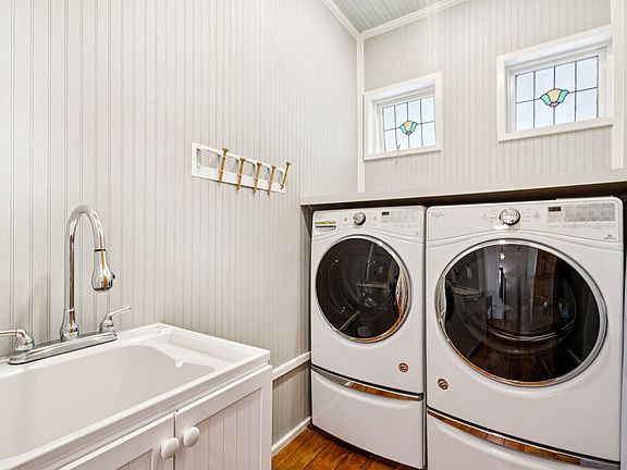 A generous primary suite on the main floor includes a king bed, closet and an ensuite bath with double vanities, soaking tub and glassed in shower. An additional bedroom featuring a daybed/trundle with an updated half bath. The laundry room, with front load washer and dryer is located just off the master suite.