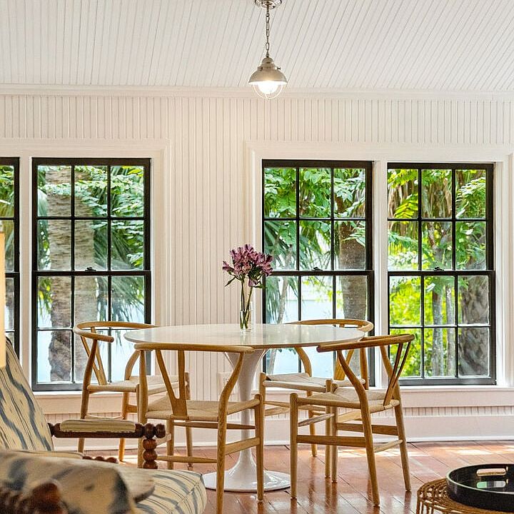 The main level features inviting living spaces, including a cozy living room with adjoining sunroom and a separate formal dining room with heart pine floors and original beadboard accents. Relax in the sun room and enjoy the game table or the desk area if you need to work while on vacation!