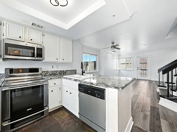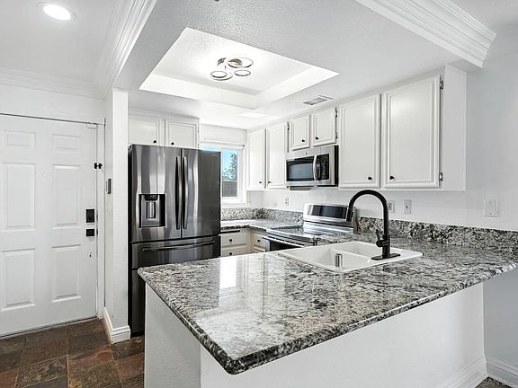 Welcome to this updated 2 bedroom, 2.5 bathroom townhome in the gated Ashford Parke community. Freshly painted throughout, this home features an inviting layout with each bedroom offering its own private bathroom, perfect for comfort and convenience. The kitchen boasts upgraded appliances and modern finishes, seamlessly flowing into the living and dining areas. Step outside to your own small private-use yard, ideal for relaxing or entertaining. Enjoy the benefits of solar for energy efficiency, plus two assigned parking spaces, one covered. With easy access to shopping, dining, and freeways, this home combines style, function, and value in one!