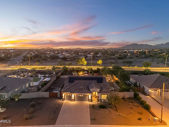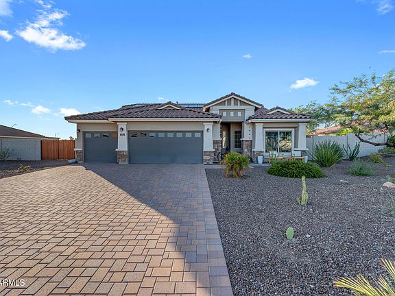 **Welcome to your private sanctuary! This stunning 4-bedroom, 3-bathroom home offers an exquisite blend of comfort and elegance on a spacious half-acre lot. Enjoy your resort-style living with a sparkling pool, extended covered patio, and low-maintenance luxury landscaping. Several pergolas with paver patios provide shaded seating areas, surrounded by lush greenery and mature palm trees, creating a serene retreat.