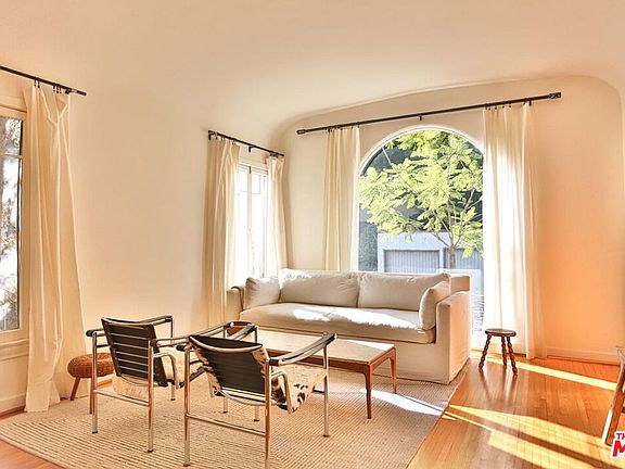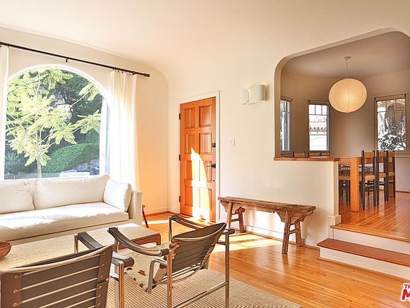 Silver Lake 1929 Spanish Duplex . This remodeled lower unit offers many period details and some great new finishes and upgrades. The sunken living room features a huge arched window, unique sconces and charming original french windows. The fully remodeled kitchen includes stone counters, newer upgraded appliances (dishwasher, gas range with custom hood, and refrigerator), and thick oak floating shelves. The original narrow plank oak floors have been refinished after being covered for 30+ years. Enjoy your own LG washer dryer in closet with generous linen storage. 2nd bedroom has a private deck overlooking an inviting patio space below. Smart features include central AC and heat, nest thermostat, custom window coverings on all windows, and off-street parking for one car in the driveway. Great location near Whole Foods 365 Market, Silver Lake Wine, The Red Lion and Ginger Grass. Come to one of the open houses on Saturday 11/15 between 1-3 pm or Sunday 11/16 between 1-3pm