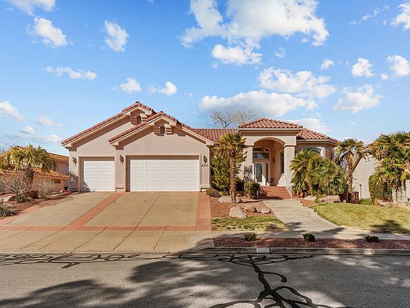 In the 90's, Sunbrook established an 18 hole championship golf course and it eventually grew to 27. The housing also grew with time and has remained one of the renowned, strong reputation areas in St. George. In a park-like setting, take time to appreciate the backyard privacy, the ripples of the brook behind and Pine Valley Mtn views to the north. Set in a multi-generational floor plan, enjoy vaulted ceilings, natural lit windows and wide open living. There's TWO of a lot offered such as family, kitchen, dining and OFFICE/DEN rooms + two gas fireplaces. The lower level billiard requires skill, precision and fun heckling. OODLES of storage too. This home will only satisfy.