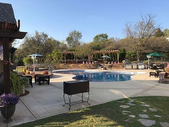 Impressive comfort, design, and elegance are the best ways to describe this custom built five bedroom, four bath colonial style two story home on over an acre of land. With over 5,000 square feet of space, this home comes packed with a resort style backyard including a beautiful in-ground pool, a bocce ball court, and a pool house for outdoor storage and entertaining. Enter the home to a large and bright foyer with two story ceilings and beautiful showpiece staircase. Take in the views from the front to the back in this fully open concept home. Off the foyer you will find your spacious living and dining room. The entrance hall leads you into the state of the art kitchen with stainless steel appliances, a large center island, two pantries and cabinet built-ins. Off the kitchen you will find a bright morning room with a bar height breakfast counter for seating and a custom built bookcase. A wine nook with hardwood floors and pocket doors to the dining room make entertaining seamless. The open concept kitchen showcases a large family room with a beautiful gas marble fireplace. Off the family room you will find an English den with dark wood beams and a side door that leads to a breezeway and the oversized 3 car garage. Upstairs you will find 4 spacious bedrooms, a fully updated bathroom, and a luxurious master suite. The master boasts cathedral ceilings, a sitting area, and multiple walk-in closets. The beautiful master bathroom includes a large soaker tub, dual vanities with custom cabinetry, separate shower and water closet. You will also find a main level in-law suite with a private entrance that includes a sitting room with French doors, full bathroom, and a bedroom with tons of closet space. This well maintained home has seen many recent updates, including a new A/C and furnace in 2020, new water heater in 2019, new carpet throughout and new stainless steel appliances.