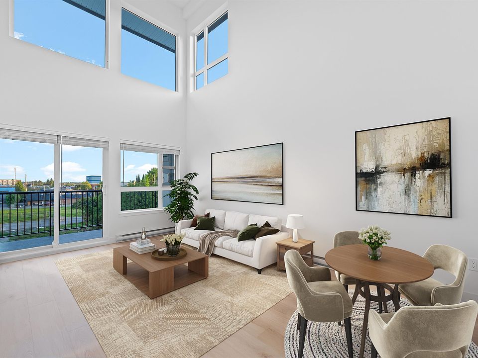 Elevated Loft Living — Now, a true 2 Bedroom at Edge 2. Renovated two-level loft-style penthouse in a substantially rebuilt building, located in the heart of Maple Ridge just steps to shops, dining, and transit. Unlike typical lofts, the upper-level bedroom is fully enclosed for true privacy, making this a functional 2-bedroom home. Soaring 18 ft ceilings and expansive windows flood the space with natural light. The modern kitchen features quartz countertops, soft-close cabinetry, and stainless steel appliances. The main level includes a spacious bedroom with walk-in closet and cheater en-suite. Laminate flooring throughout, custom shelving in upped bedroom closet. 1 parking and storage included. Pets and rentals welcome.