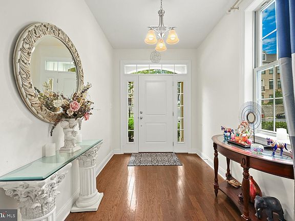 Welcome to this stunning Toll Brothers East-facing, brick-front corner 28 foot wide townhouse offering a rare combination of space, style, and thoughtful upgrades throughout. Perfectly positioned for both privacy and natural light, this home features approximately 30 feet of separation from the next corner unit and enjoys excellent ventilation thanks to its smart design and corner location. Step inside to find a bright, modern interior with gleaming hardwood and LVP flooring and an inviting open-concept layout. The main level offers a designated sitting room, a formal dining room, and a large, open kitchen designed for both everyday living and entertaining. The kitchen boasts a big center island with pendant lighting, a butler’s pantry, updated appliances including a new refrigerator and dishwasher, and plenty of storage space. The sunny breakfast nook opens directly to the deck, while the adjacent living room features a cozy fireplace, dimmable recessed lighting, and built-in surround speaker wiring for an enhanced entertainment experience. Upstairs, you'll find four true bedrooms, all comfortably carpeted and thoughtfully laid out. The lower level offers even more living space with a finished recreation room featuring luxury vinyl plank flooring, a wet bar with dimmable lighting, and surround speaker system wiring—perfect for movie nights or hosting guests. Additional upgrades include ceiling storage in the garage, dimmable lighting in the dining area, breakfast nook, and kitchen island, and a covered patio beneath the deck—ideal for year-round outdoor enjoyment. Backing to woods, this home offers peaceful views and a sense of retreat while still being close to it all. HOA includes: lawn maintenance, landscaping maintenance, snow removal, trash removal plus amenities. Enjoy the many amenities of the community, and the convenience of nearby Moorefield Station Community Park with its baseball and softball diamonds, soccer field, playgrounds, and picnic areas. Just minutes from Brambleton Town Center, you’ll have easy access to Harris Teeter, movie theaters, walking trails, shops, restaurants, and entertainment. Commuters will appreciate the proximity to Loudoun County Parkway, Claiborne Parkway, major routes, and the Silver Line Metro station. This home truly has it all.