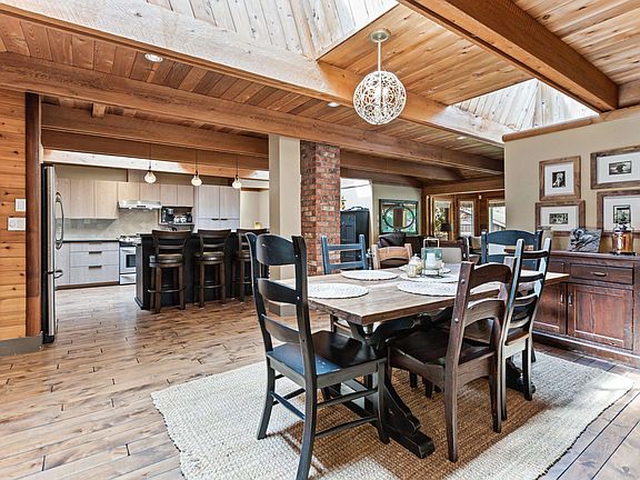 Majestic country log homeOpen-concept main floorFilled with natural lightVaulted ceilingsChalet-inspired fireplaceLarge islandStainless steel appliances