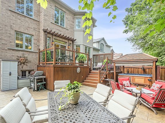 If you saw this home before, take another look. Renewed, refreshed and backing on a wooded ravine this Luxury Oakville home offers privacy, nature & elegance in one of the most beautiful and picturesque locations in all of Westmount! This 3300 +1500 sq ft 5+1 bedroom, 5 bathroom home is spectacular from top to bottom, inside & out! The outside features alone could fill this page! Premium stucco facade, covered front porch, patterned concrete driveway, side walkway & rear patio, extensive exterior lighting, an amazing wooded backyard retreat with a 2-tiered deck & fabulous covered hot tub -all fully landscaped front & back! Step inside through custom double front doors into the beautiful open concept main floor featuring a welcoming foyer, a grandiose dining room perfect for large family gatherings, a spacious main floor den, & the gourmet Chefs kitchen with granite counters, breakfast island, stainless appliances, stone backsplash, above & under cabinet & pendant lighting. The kitchen is open to the spacious family room with ornamental gas fireplace. Both rooms have amazing ravine & yard views and receive amazing light through the bay window, patio doors & large kitchen window! The main floor also features elegant archways with columns, powder room, laundry room with garage access, hardwood floors, upgraded light fixtures, crown mouldings & pot lights. Upstairs, the second floor boasts five generously sized bedrooms, each with ensuite privileges. All 5 bathrooms have stone counters! The primary suite is a true retreat & spans the entire back of the house, featuring a magnificent bedroom, walk-in closet, a luxurious six-piece ensuite, with stunning views of the yard & woods from every window! The front guest suite features a gorgeous balcony! The finished basement features a stunning recreation/entertainment rm with a working bar and also features a 6th bedroom, an office, a stunning custom finished bathroom with walk-in shower, and tons of storage and closet space!