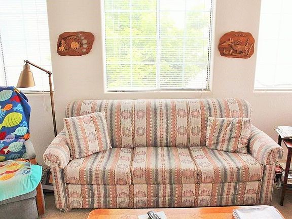 So light, bright & appealing, this special home is a definite "Must See". Wide open & wonderful & wrapped in windows bathing the room in sun filled natural light. Dining area overlooks the Forest boundary w/panoramic views of sunsets & occasional wildlife. Large kitchen, skylights, walk in shower & lots of storage. Austrian pines frame the home, faux stone skirting, 10x12 storage shed with W/D, workbench & metal roof. Cozy front porch, full length covered deck in rear. Fully furnished & accessorized w/decorator details for turnkey move in. Close to clubhouse, fishing pond & easy HOA.