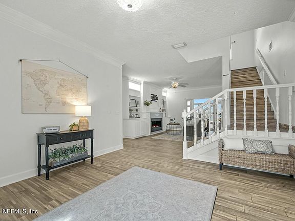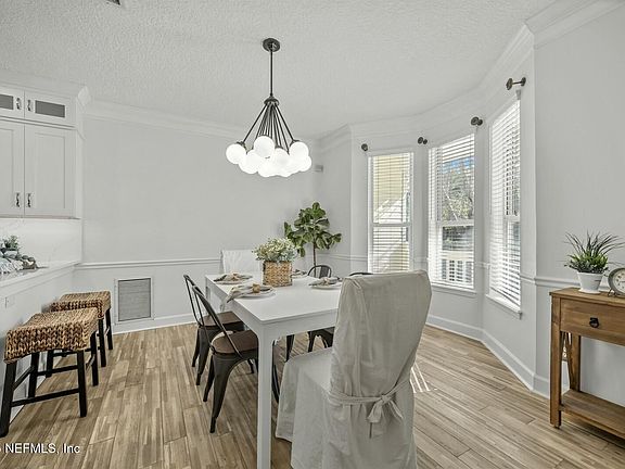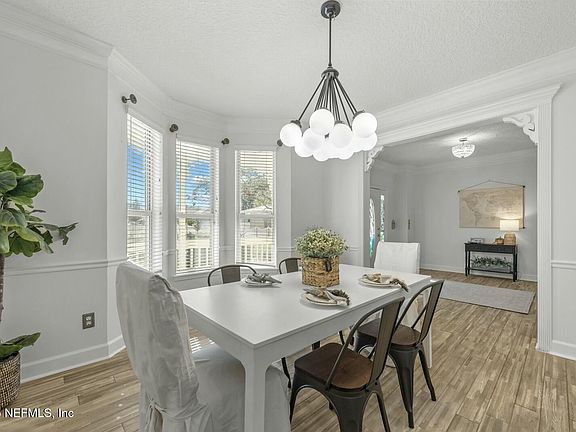 Experience waterfront luxury living in this custom home on the St. Johns River. Stunning views of Dames Point Bridge and Blount Island. Nestled at the end of a cul-de-sac, boasting a long driveway for ample parking. Fresh updates include Luxury Vinyl Plank flooring and fresh paint. Recently renovated kitchen and primary bathroom. 10 ft ceilings, crown molding, and carved wood details showcase meticulous craftsmanship. First-floor primary bedroom, two spacious bedrooms upstairs with a loft. Kitchen features new graphite steel appliances and stylish cabinets. Gas fireplace in living room, sunroom overlooking the pool and river. Cabana bathroom, laundry room, and office or 4th bedroom on the first floor. Enjoy outdoor living with expansive lawn, pool, hot tub under the Gazebo. Minutes from beaches, St. Johns Town Center, and Downtown.