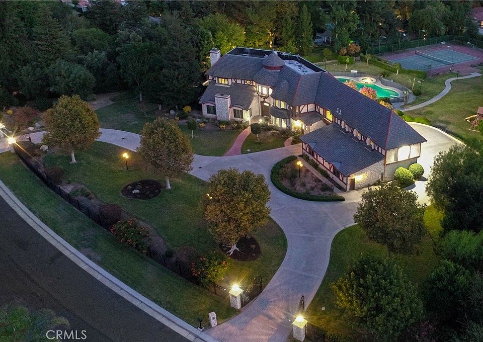 A custom built manor sits within the 24 hour guarded gates of Indian Springs Estates. Set amongst the Santa Susana Hills, this French Country home is most noticeably known for its prestigious features and well-crafted grounds, spans nearly 2 acres. Its masterful architecture by the renowned Ron Firestone, is styled with timeless luxury and impeccable craftsmanship including wood coffered ceilings, Parquet wood flooring, and imported marble throughout. The tree lined tennis court estate is privately gated with an expansive motor court, exemplary manicured landscape and a large, glistening pool. The entry staircase is classified as one of the most renowned grand entrances in the Indian Springs Estates. The beautifully refurbished kitchen consists of marble accents, butler’s pantry, breathtaking custom cabinetry, and a large picturesque window with views of the park-like yard, bringing in bounds of natural light. The large-scale living quarters include a family room with a bar, as well as living, formal dining, and media rooms, a gym, five en suite bedrooms, and an elegant master suite complete with a sitting room and sauna. The premises contains a detached guest studio that includes a bedroom, bathroom, and kitchenette and gym. Ultimate security, 2 guard gates, an additional permit only gate to the Estates and privately operated gates. Don’t miss out on this enchanting home fit for royalty.