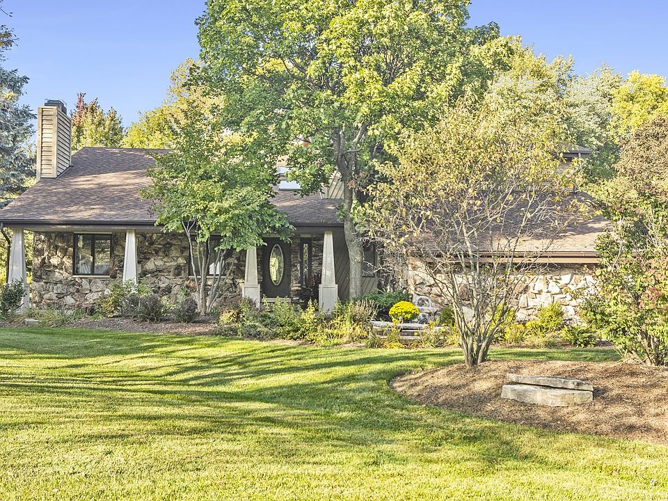 Contemporary home on 1 acre has been completely remodeled. Soaring ceiling in the LR shouts "grand"& the floor to ceiling stone fireplace supports the drama. Open floor plan, new wrought iron staircase balusters, oak doors throughout, & oak hardwood flooring in LR, DR & primary bedroom. Unique 2 primary bedrooms, 1 on first floor & 1 on the 2nd for flexible living. Gourmet white kitchen features granite counters, Viking stove, SubZero fridge, premium porcelain tile flooring, walk-in pantry, & beautiful views of the private back yard. All bathrooms have been remodeled w/the latest luxury trends. Septic 2013, roof 2011, 3 car garage & remodeled laundry room. Walk out basement has an enormous recreation room & plentiful storage space. Fresh landscaping, new backyard deck, fire pit & dog run. Fremd High & Whitely Schools.