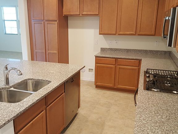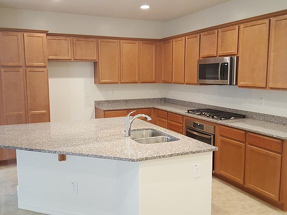 This 2018-built Woodside home is MOVE-IN READY! Its a beautiful single family home and it can be your's to rent. With 4 large bedrooms and a loft, there is plenty of room for everyone. The downstairs bedroom has an adjacent full bathroom. The kitchen has granite counters, large island with sink, stainless steel appliances and is open to the eat-in dining area and family room. The master bedroom/bathroom, two other bedrooms, a loft, hall bathroom and laundry are upstairs. Master bath has separate tub/shower, dual sinks and large walk-in closet. There is a 2-car garage, 2-car driveway, private covered patio and side yard, and pre-plumbing for soft-water. Short walk to Splash-Pad, pool and playgrounds. Outstanding schools and close to shopping dining and Loop 202 freeway.