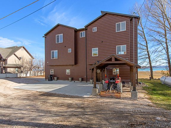 Enjoy incredible sunrise and sunset lake views-and everything in between-from every room of this stunning three-story beachfront home on the shores of Bear Lake in Fish Haven, Idaho. This beautifully designed property offers 4 bedrooms, 4 bathrooms, two spacious living rooms, and four fireplaces for cozy year-round living. Outdoor living is exceptional, with two balconies, a large concrete patio, gazebo, hot tub, fire pit, and storage shed. This log home is sold fully furnished and turn-key, ready for immediate enjoyment or use as a short-term rental, which is permitted. With nearly 200 feet of private beachfront, you can launch boats, paddleboards, or simply relax along the water's edge. Located just minutes from access to Fish Haven Canyon, you'll enjoy hundreds of miles of ATV/UTV and snowmobile trails leading into Cache National Forest, as well as endless opportunities for hiking, biking, and snowshoeing. With no HOA and unbeatable lakefront living, this property offers the perfect blend of recreation, relaxation, and investment potential on beautiful Bear Lake.