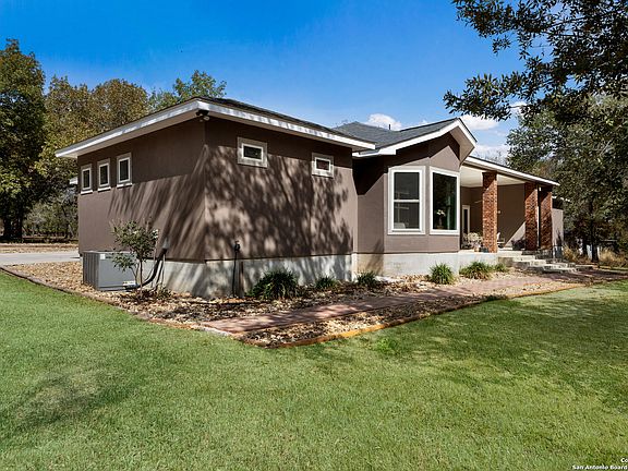 30 minutes from downtown San Antonio. Tucked off Priest Rd, this custom single-story delivers big, open living: a chef-style kitchen with oversized island, natural granite, and pendant lighting flows to a tray-ceiling great room with fireplace and tall windows. Primary suite retreats with wood floors, bay window sitting area, and a spa bath with dual vanities, walk-in shower, and jetted tub. Work-from-home ready office with built-ins. Travertine-style floors, crown molding, and wrought-iron double doors elevate the entry. Out back, a wide covered patio with brick columns and lots of shade sets the scene for easy indoor-outdoor living. Come see the space, light, and layout that make this one feel like home.