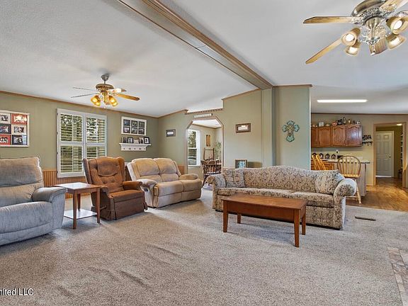 UPDATED 3/2 manufactured home on 3 acres in WEST HARRISON's school zone. This home as been extremely well kept and updated. Granite, updated cabinetry, new carpet, wood-burning fireplace, DOUBLE water filter system, and a NEW large back deck. An office area is built into the master. The master bath is very spacious and includes a soaking tub and separate, new shower. The roof was totally replaced 5 years ago with new plywood, an ice and water shield, and architectural shingles. The ''Harley House'' (storage area) was constructed with 3/4'' treated flooring and is insulated. The raised kennel remains and is on skids for easy moving. There is also a 20x24 carport with lean-to and two small sheds in great condition on the property. This stunning property also has a paved drive & fenced front yard.