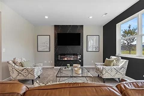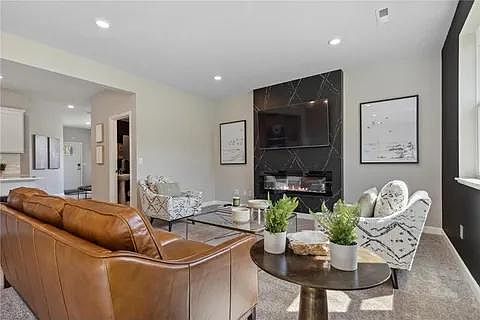 Modern Open-Concept Design Seamlessly connects the Great Room, kitchen, and dining area for a bright and inviting living space.