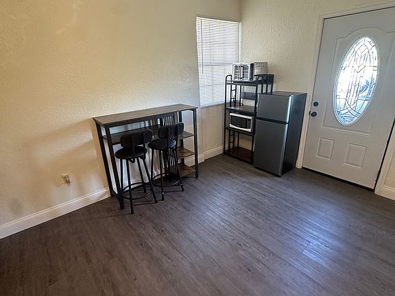 Enjoy the best of both worlds: a fully furnished apartment ready on day one, with the option to make it your own. Interior Features 1 bedroom, 1 full bathroom Wood flooring throughout Kitchen area with microwave and air fryer/conventional oven, electric cooktop Built in Sink Brand-new refrigerator Small wooden dining table with built-in storage Brand-new dresser for clothing storage Large closet with shelving and closet rod Furnishings This apartment is MOVE-IN ready with brand-new furniture, while still giving you the flexibility to bring your own pieces. Must stay in the unit: Bed set (with lift-up storage feature) Wall-mounted Full-Motion TV bracket (fits 30" 80" TVs) Flexible for you: All other furniture is included, but may be swapped out if you prefer your own. The mattress may also be changed if desired though it is brand new and comes with a brand-new mattress cover. If you'd like anything removed, simply text the owner and we'll arrange for removal. Laundry Exclusive access to a brand new washer and dryer located in a private shed just steps away via a dedicated path Laundry shed is not shared; reserved for tenant use only Parking Private driveway, separate from the main house and reserved for tenant use Utilities Water included Electricity included WiFi not included Owner handles maintenance and repairs Pet policy: 1 pet allowed. Non refundable pet admission fee $100 Lease Terms 6-month lease options 1-year lease options Occupancy: Designed for up to two adults. No smoking inside the property.