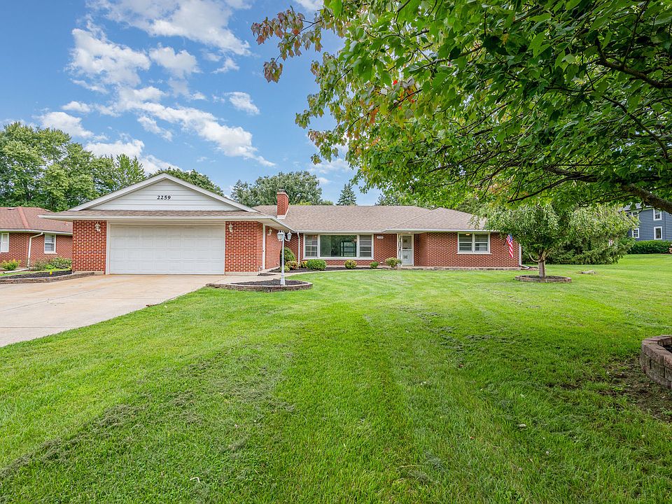 Wow-move-in ready brick ranch in Aurora! This charming home sits on just over half an acre and boasts incredible curb appeal with well-maintained landscaping and a spacious driveway. Step inside to find a light-filled interior featuring fresh carpet, a large living room with a cozy fireplace, and a spacious kitchen with ample cabinetry and stainless steel appliances. The home offers three generous bedrooms with new carpet, 2.5 bathrooms, a formal dining area, and both a sunroom and a screened-in porch-perfect for enjoying the outdoors in comfort. The huge backyard includes two sheds for added storage and a rare 4-car garage, ideal for vehicles, a workshop, or extra space. Conveniently located near schools, parks, shopping, and more-schedule your showing today!