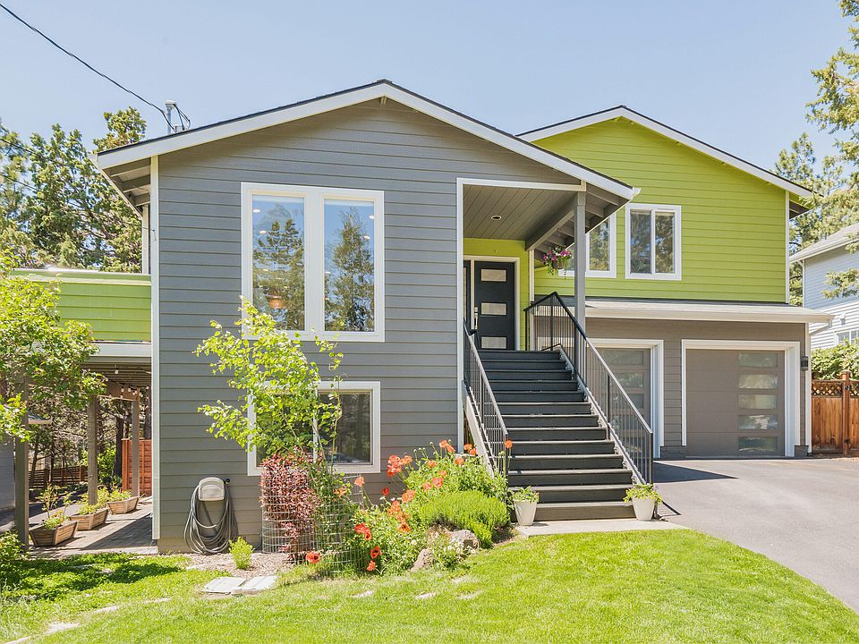 Looking for NW Bend West Hills Living? This completely remodeled home is so classy and unique. The spacious .19 acre lot encompasses so much and literally everything has been beautifully redone. The floor plan features tri-level living with the main floor living area featuring a modern kitchen, top of the line Thermador appliances, Cement Elegance counter tops, and all new tile flooring and awesome cabinetry. Head up the short stairs to the primary suite where cork floors, and an all new primary bathroom has floor to ceiling tile and a deck overlooking the spacious yard, wired for a hot tub. Downstairs is 2 more bedrooms, all new bathroom, office area, and laundry room. There is easy access to the fabulous backyard with all new fencing, updated irrigation and garden areas. This home is in the perfect location too, just around the corner from Hillside Park, a dog off leash area, 1st Street rapids, Newport Market and Drake Park.