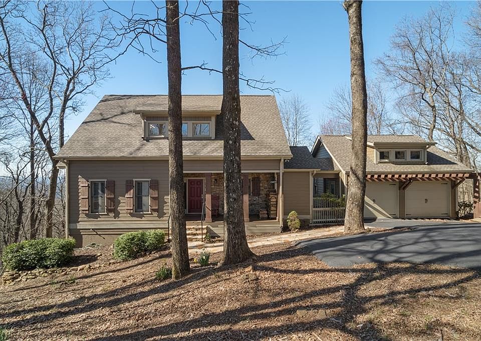 Spectacular views await as you open the front door to this lovely north GA mountain residence. Main level has master suite with walk-out deck to enjoy your morning coffee while taking in the views of the stunning countryside. Master bath has been totally remodeled. First floor has large living area with wood burning fireplace. Eating area is conveniently located to first floor living and easy breeze deck. Entire first floor is open to large open air deck. Upstairs living contains 2 bedrooms and Jack and Jill bathroom with office/reading area. Downstairs has expansive living space with wide screen TV, gaming area, and wine storage room. This level also contains the 4th bedroom with its own totally remodeled bathroom. Mountain views are visible through a large set of windows in the great room, 3 bedrooms and terrace level. Fenced in backyard is great for pets. Most furniture will convey with home sale. Schedule your showing quickly as this home will not last long!