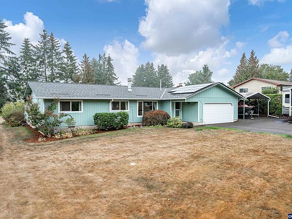 JR acre property w/raised garden beds, fruit trees, mower shed w/mower (negotiable), Hot tub off addition french doors Master suite w/large walk-in, double head shower & back patio BBQ setting, detached shop, front blacktop paved RV/toy covered canopy, parking & more. Seller to pay off Solar panels thru closing. New 50 yr roof 2022 transferable to new owner. Complete interior/exterior remodel in 2006, Gas heat-Water heater, woodstove, & range. Come look today!