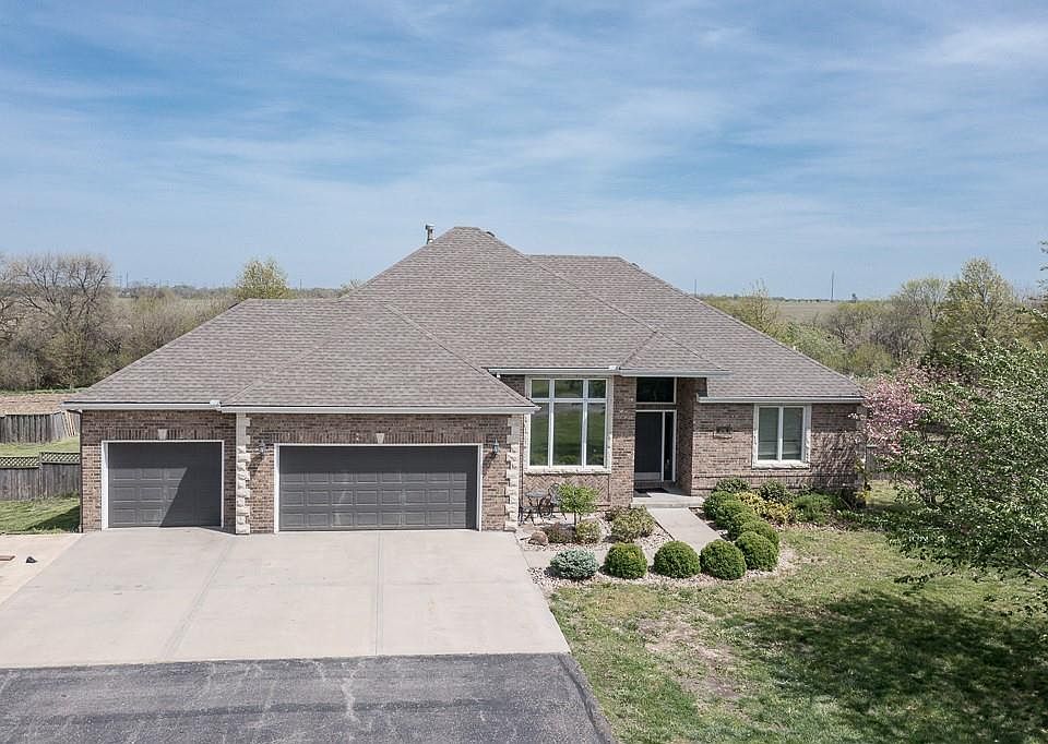 WELCOME TO THIS GORGEOUS REVERSE 1.5 STORY HOME ON 5 ACRES M/L, offering the perfect blend of luxury and tranquility. Boasting a brick and stone front, this residence features a 3-car garage and hardwood floors throughout the kitchen, great room, dining area, and hearth room. The spacious master bedroom provides a serene retreat with a walk-in closet and a private bath equipped with double vanities, a jetted tub, and a walk-in shower. The walkout basement is a haven for entertainment, featuring a family room, a rec room with a theater setup, two bedrooms, and a full bath. The garage offers an excavated bonus space finished as a media room and game room, ideal for a cozy man cave. Outdoor living is a delight with ample space between the deck and patio, all enclosed within a privacy-fenced yard. This property promises a lifestyle of comfort and sophistication in a serene rural setting.
