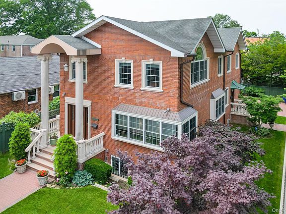 Stunning 2012 Custom Brick Duplex – Modern Luxury Meets Flexibility & Value! This exceptional five-bedroom, five-bath Contemporary duplex in Bayside offers the perfect blend of modern Italian craftsmanship, generous living space, and unmatched location. Built in 2012 on a spacious 5,000-square-foot lot, the home’s stately brick façade, chimney, gated decorative driveway, and professionally landscaped grounds immediately set a tone of elegance and privacy. A fenced perimeter with a brick base and an iron railing adds both durability and visual appeal. Inside, soaring ceilings and oversized windows fill the open-concept living and dining areas with abundant natural light, highlighting the beautiful crown molding, recessed lighting, and glass-covered fireplace. The chef’s kitchen is a true centerpiece, featuring custom Italian cabinetry, a Sub-Zero refrigerator, a Thermador professional-grade stove, dishwasher, and dryer, along with a decorative backsplash and Italy-glazed ceramic tile floors. A desirable first-floor bedroom and full bath offer flexibility for guests or multi-generational living, while heated floors in both the master and first-floor baths add everyday luxury. The master suite is designed for indulgence, featuring a chic double vanity, a garden tub, a separate stall shower, and custom Italian cabinetry, all framed by Hunter Douglas window treatments and enhanced by elegant chandeliers. The fully finished, high-ceiling basement is tailored for entertainment and functionality, complete with a dedicated home theater setup, an extra-large LG washer and dryer, and ample space for recreation. Throughout the home, comfort is ensured with Fujitsu split air conditioning units, central air, a smart thermostat, and a hot water heating system. For peace of mind, the property includes a comprehensive security system with outdoor cameras. Outdoor living is equally impressive, with a charming fish pond, a patio and terrace perfect for dining or relaxation, and a remote-controlled awning for effortless shade. Manicured lawns are maintained by a Pacific Lawn Sprinkler system, while the 500-square-foot garage and decorative driveway provide convenient and secure parking. Located within the coveted District 26 school zone, this home is just minutes from the Bayside LIRR station for a quick commute to Manhattan, as well as the vibrant dining and nightlife of Bell Boulevard and multiple green spaces, including Alley Pond Park and Golf Center, Oakland Lake, and Cunningham Park, to name a few. Offering a rare combination of upscale amenities, a flexible floor plan, and a prime Bayside location, this turnkey duplex is perfect for luxurious owner-occupied living, multi-generational households, or savvy investors seeking long-term value.