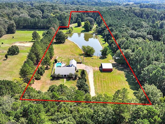 This spacious 4 bedroom, 4 bath home features one and a half stories of thoughtfully designed living space, including an upgraded kitchen and modern updates throughout. Recent improvements include a new HVAC, tankless water heater, new pool liner, pump, and sand filter, and roof maintenance repairs. The outdoor pool deck has been refinished and a new balcony handrail adds peace of mind. Additional features include a viking range, 4 car garage and a large open metal shed that includes horse stalls, an additional shed, 2 metal pole barns, and a stocked pond with bass and bream.