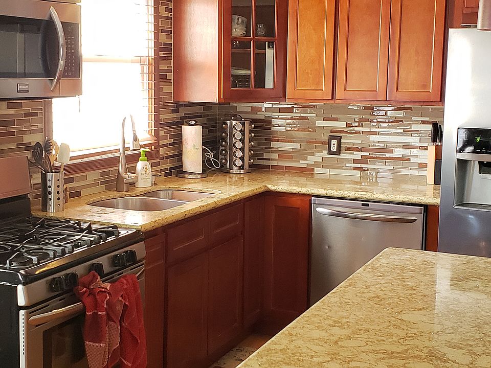 18185R: Show & sell! this tastefully redone Ranch w/open concept offering Living room w/cathedral ceilings, island kitchen redone in beautiful earth tones & cherry cabinets w/side access to yard & driveway, stairs from Living room lead you to a spacious basement tastefully done w/entertainment area, 3/4 bath, Family room, game room, laundry room, large storage room + door to large back yard. Hardwood floors on 1st floor + basement w/wood like ceramic flooring. Large attic for storage w/pull down stairs. A must see!
