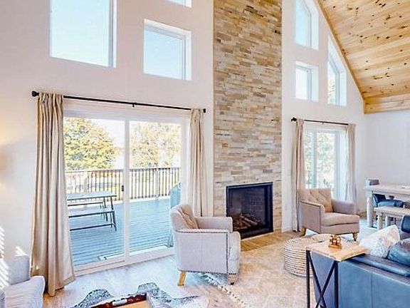Spectacular Opportunity to own a magnificent gem on the shores of Lake Champlain. 3 Acres just a short drive from I87 in NY and I89 in VT. Built in 2022 this magnificent chalet consist of 5 Bedrooms, perfect for a large family retreat or a short term rental. Huge deck overlooks the lake and western sunsets. Home has an in ground pool and hot tub completely fenced in with its own pool house. Pool house has a 3/4 bath, small kitchenette and ping pong table with heat pump for heat/ac. Yard is nicely manicured with fire pit, adirondack chairs, volleyball court and playground for the kids. Lakeside has a deck with power and 50' aluminum dock for all your lake toys. Being offered fully furnished and turn key.