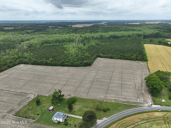 Beautiful 103.6 acre farm and timber property on Camp Perry Road in Perquimans County with 1,447' of road frontage, less than a mile from Perquimans River with a 3 mile drive to a public boat ramp. +/-26.6AC farmland under cultivation (farmer has the right to harvest crops during the 2025 growing season), 76.6AC of timber that was cut in 2013 and the higher ground was re-planted in pine. Includes a +/-1,440 sq ft 4 square style house built in 1925 that could be 3 or 4 bedrooms and one bath which is being sold as-is. No representations are being made about the septic tank functioning or being approved for that many bedrooms as it was recently damaged by a propane truck. Roof was replaced with 30 yr architectural shingles in 2014 after a hurricane that damaged the roof. No air conditioning and water source is a well although County water is on New Hope Road. At least a third of the timber is in a flood zone and/or likely wetlands. I witnessed doves, deer, turkeys, & a bear on my first exploration of the woods and I would be certain the swampy portions attract waterfowl in the winter. Contact broker for combo if you want to get in the house.