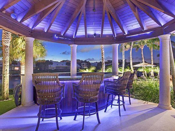 Surround yourself in the Luxurious Florida Lifestyle. Live steps away from the Intracoastal with a large protected deep water dock for a 75' yacht. There is no need for a vacation, this house has it all. Newly renovated in 2014 Resort style pool & patio, outdoor kitchen, gazebo and wet bar. Lavish master suite w/his/her closets,laundry room, breakfast bar,separate sitting room, large master bath. Open family room-kitchen floor plan lets you entertain while in the new gourmet kitchen w/ new countertops, Thermador range, island food prep station and much more. Watch all of your favorite shows in the comfort of the 8 person theater, conveniently located off the family room.New entire house generator, outdoor grill,driveway and much more. YOU CAN STOP LOOKING...THIS HOUSE HAS IT ALL AND MORE!