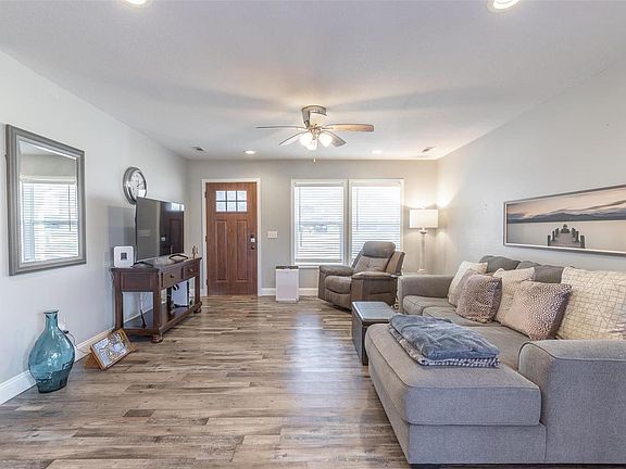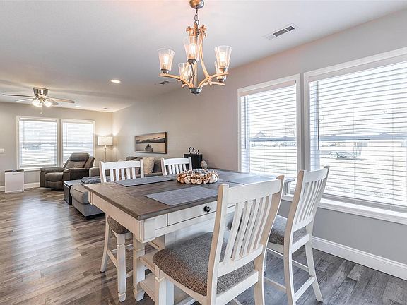 Located just minutes from town, this charming home offers the perfect blend of style and functionality. Situated on a spacious corner lot, the property boasts a new wooden privacy fence, durable Hardie board siding, and stone veneer accents. Enjoy the outdoors from the covered front porch or the  covered back patio. Step inside to an inviting open floor plan, perfect for entertaining. The eat-in kitchen features a pantry, center island, and convenient access to the back patio for seamless indoor-outdoor living. The primary suite is a true retreat, offering private backyard access, a luxurious bathroom with dual sinks, a separate tub, large tile shower, and a generous walk-in closet. This home has everything you’re looking for and more—schedule your showing today!