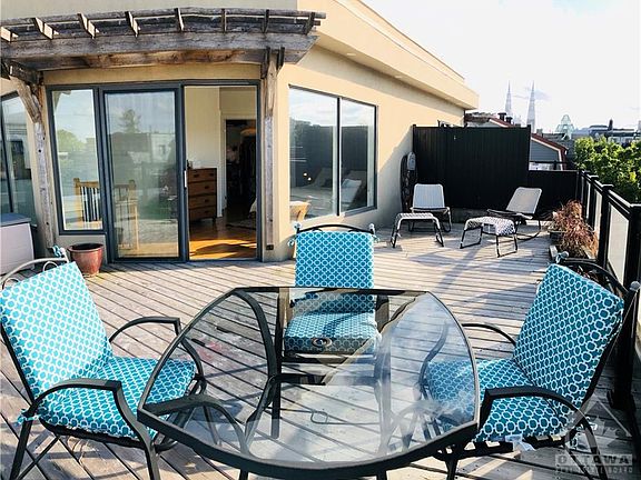 Explore Ottawa from your one of a kind Montmartre 2 story, 2 Bedroom condo in the Heart of historical Byward Market. Truly a unique part of the fabric of Ottawa, an opportunity to own a piece of it only comes around once and a while. Exclusive use 400+ sq ft patio, creates a personal retreat while being steps from the best restaurants, museums and shops that Old Byward has to offer. Quick jaunt to Foreign affairs, Gatineau, Light rail transit, Rideau and Ottawa River. 1 underground parking + 1 Storage locker. Light filled windows, private entrance, lofted 10ft+ ceilings, luxurious kitchen with walnut bar & concrete counters, 2 full baths and in unit laundry. 2nd bedroom left open concept but a wall can be constructed at buyers discretion prior to completion. Location+++ Uniqueness+++ No conveyance of offers until 4pm on February 28th, 2021.