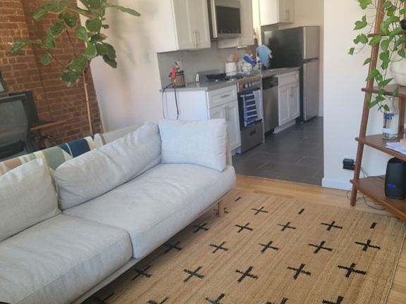 Bright, large pre-war 1 bedroom. Separate kitchen with dishwasher. Skyline views. Exposed brick and hardwood floors. Heat and hot water included. Prime location.