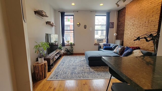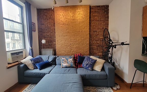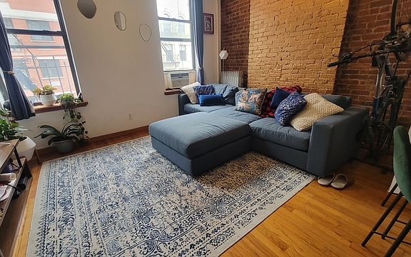 Large, hi ceiling prewar 1 bedroom. Tons of natural sunlight. Hardwood floors and exposed brick. Separate kitchen. Heat and hot water included. Prime location.